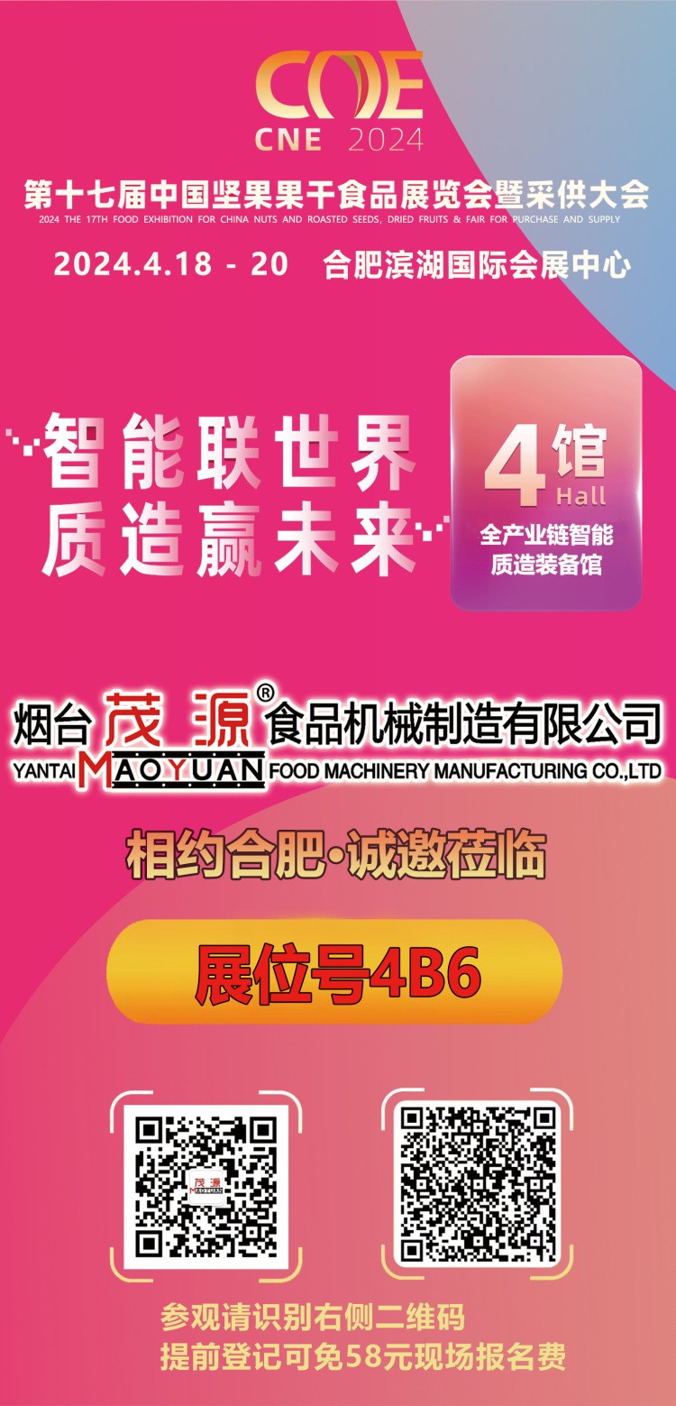 4月18-20日,茂源食品機(jī)械邀您蒞臨第十七屆中國堅果炒貨展
