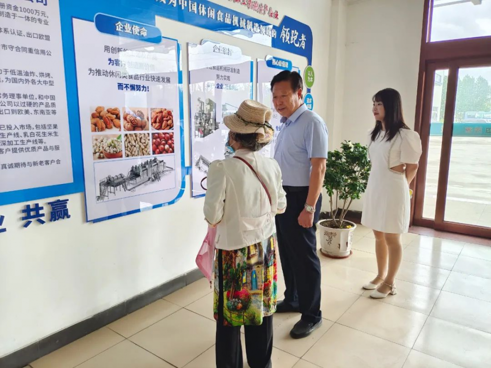 花生機(jī)械和堅(jiān)果炒貨設(shè)備近日,中國食品工業(yè)協(xié)會(huì)堅(jiān)果果干專業(yè)委員會(huì)常務(wù)副會(huì)長翁洋洋率領(lǐng)協(xié)會(huì)工作人員一行,蒞臨我司進(jìn)行考察調(diào)研,并就相關(guān)設(shè)備技術(shù)進(jìn)行指導(dǎo)工作。